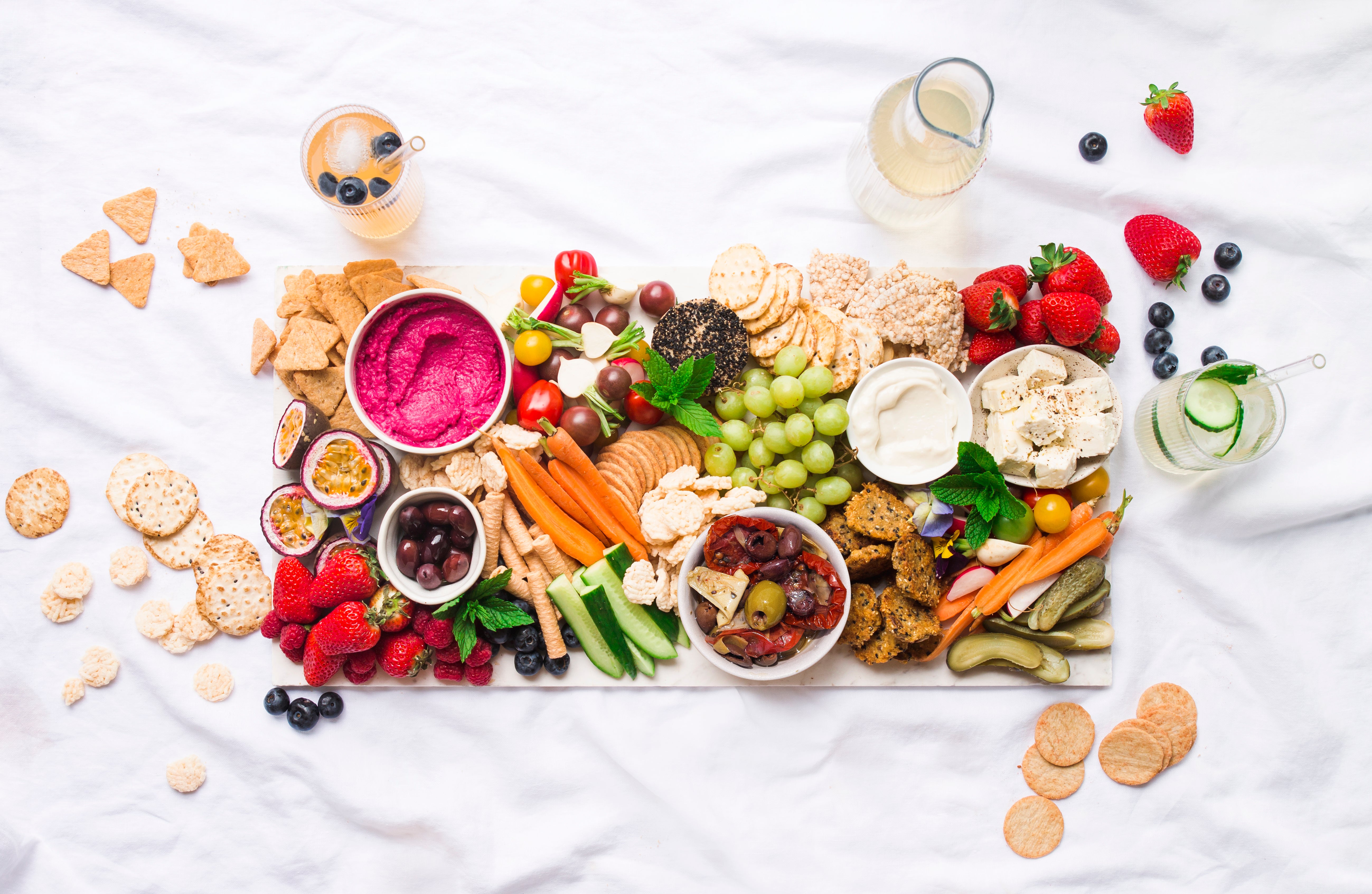 Enhance the flavour profile of your platter by including organic dips and spreads made by you! A homemade roasted beetroot hummus, cashew cheese or tzatziki can complement the freshness of the organic ingredients while adding an interactive element for your guests.