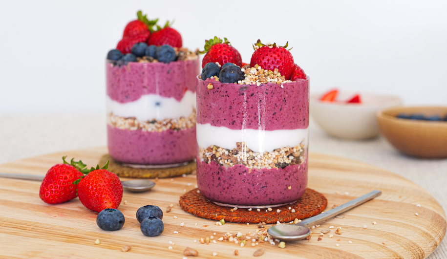 This vibrant Layered Berry and Ashwagandha Parfait is a nutrient-packed treat that combines the antioxidant goodness of berries with the calming benefits of ashwagandha. A creamy coconut yogurt and superfood blend form the base, while fresh strawberries and blueberries add a burst of freshness.