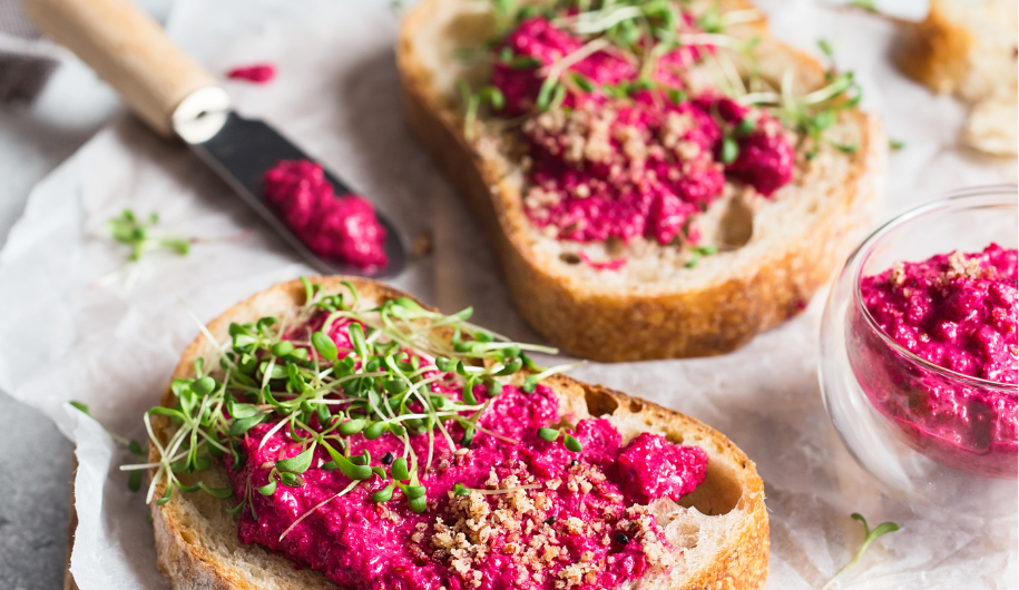 Our Roasted Beetroot Hummus is made with oven roasted beets, chickpeas, tahini, miso, cashew butter, olive oil and lemon juice. It’s a vibrant and healthy snack or spread that's so easy to make!