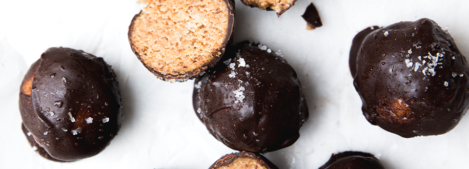 - Melt the chocolate over a double boiler or in a microwave. Dip each ball into the melted chocolate. Place onto a tray lined with baking paper and sprinkle each truffle with a little sea salt. Place in the refrigerator until the chocolate has hardened.