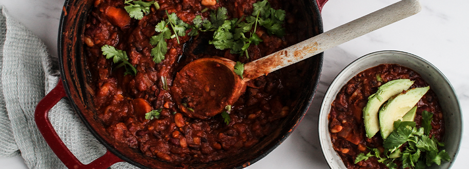 This three bean Mexican chilli is perfect for serving a crowd during the cooler months. It’s a hearty meatless option that can be enjoyed with rice or nachos and topped with avocado, coriander and coconut yogurt. Make up a batch or two and freeze for those nights when you don't feel like cooking!