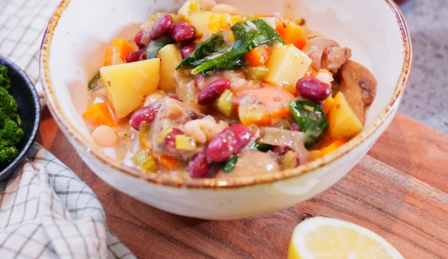 We've got a warm and hearty vegetarian stew that is perfect for a winter weeknight meal. Simply swap out the veggies for anything you have leftover in the fridge or use frozen or canned options.