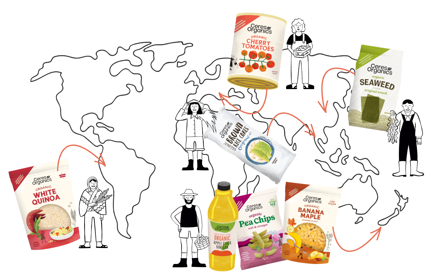 We source our vine-ripened tomatoes from sunny Italy, our rice crackers are made from brown rice cultivated in Thai rice paddies. Our Apple Cider Vinegar comes from a local Rangiora family and our Sauerkraut from our expert German growers. Our Miso is created with our Japanese maestros and so on.