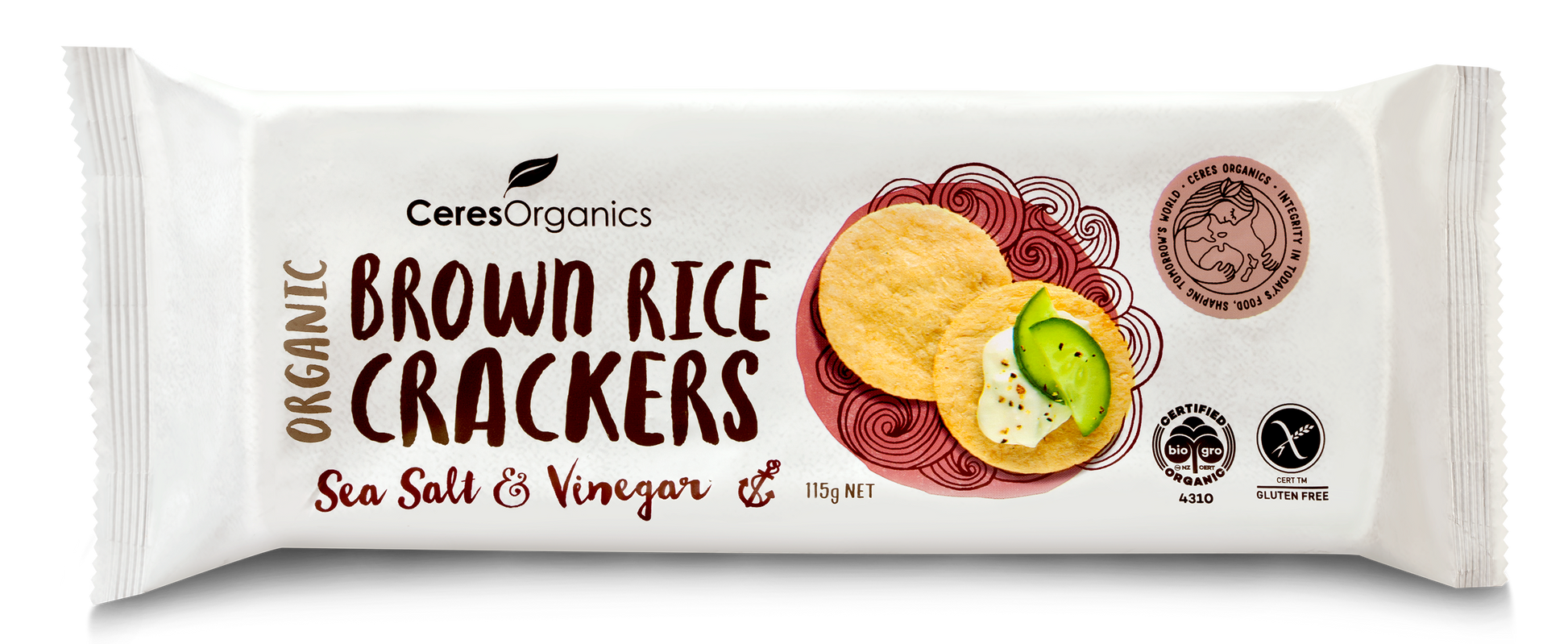Organic Brown Rice Crackers, Sea Salt & Vinegar - 115g