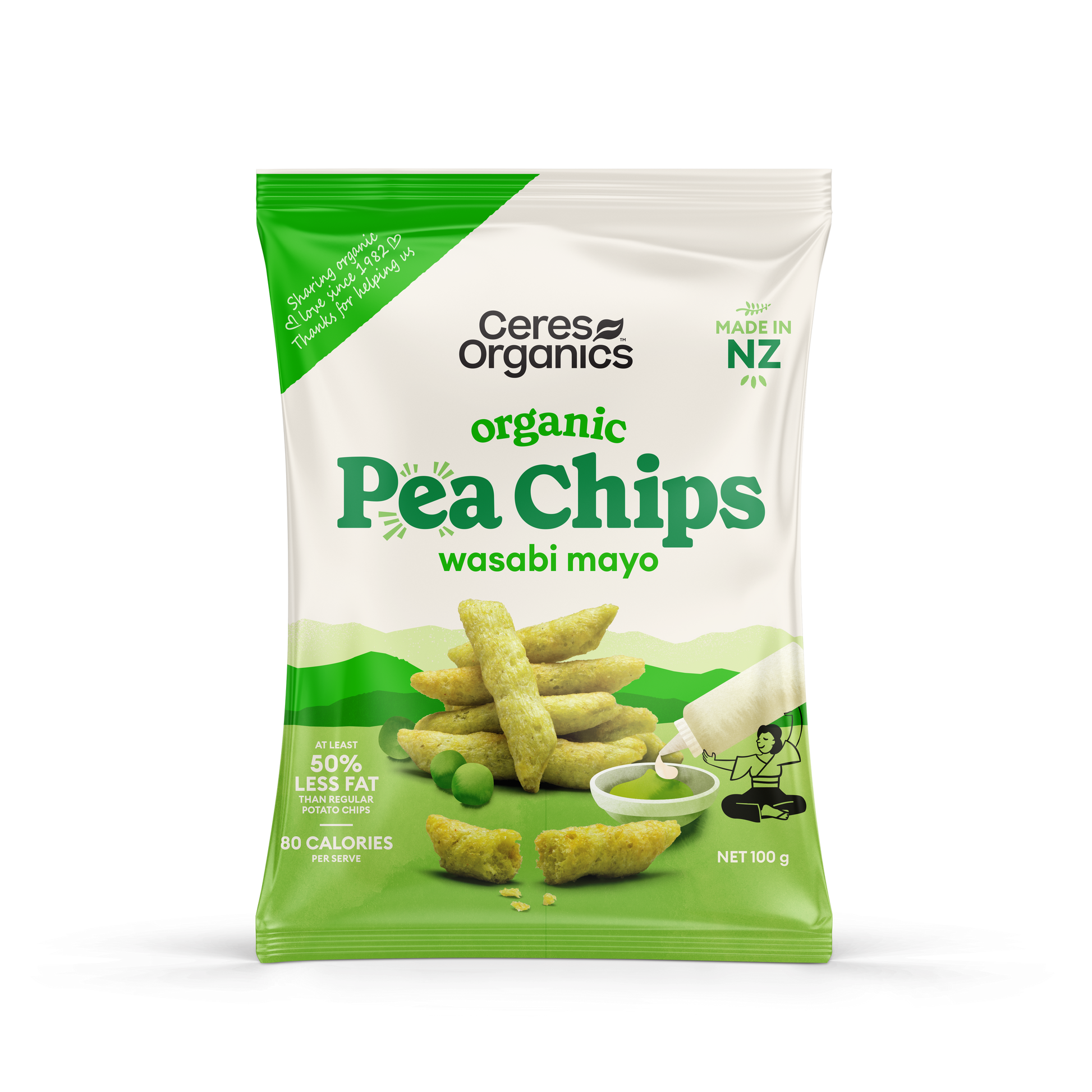 | ingredients: | Pea* 50%, Corn*, Sunflower Oil*, Seasoning (Sugar, Salt, Potassium Chloride, Yeast Extract, Natural Flavour, Garlic , Soy Sauce Powder, Mustard, Citric Acid) (*Certified Organic) |