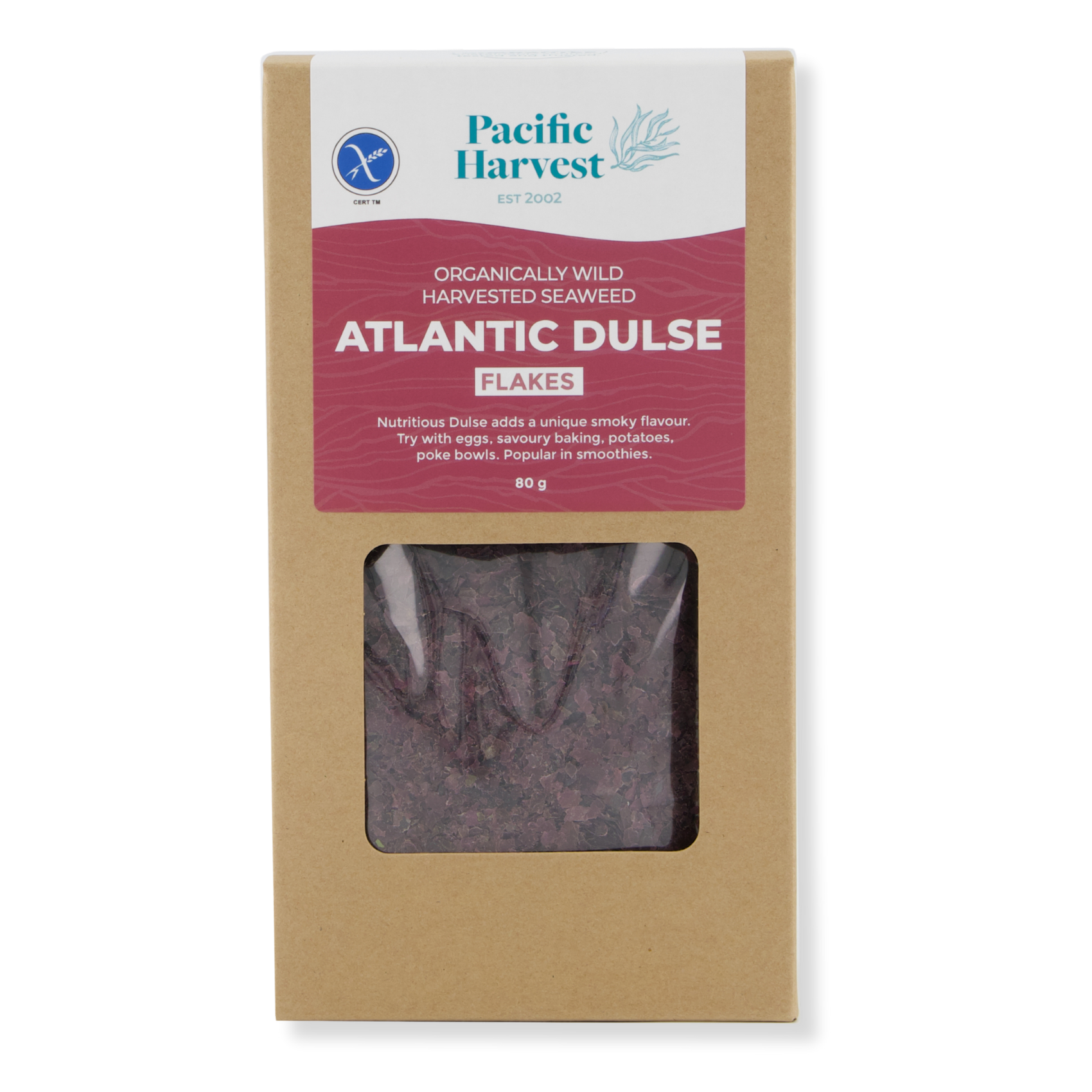 Our Atlantic Dulse is organically wild harvested, air-dried and tested. A popular smoothie detox ingredient, its also delicious with avocado, tomato, in soups, stews and stir fries. Garnish eggs, potatoes or pasta. Pairs beautifully with anything bacon works well with. Also available in leaves, or try our Manuka Smoked Dulse for a unique flavour sensation! Excellent source of Iodine.